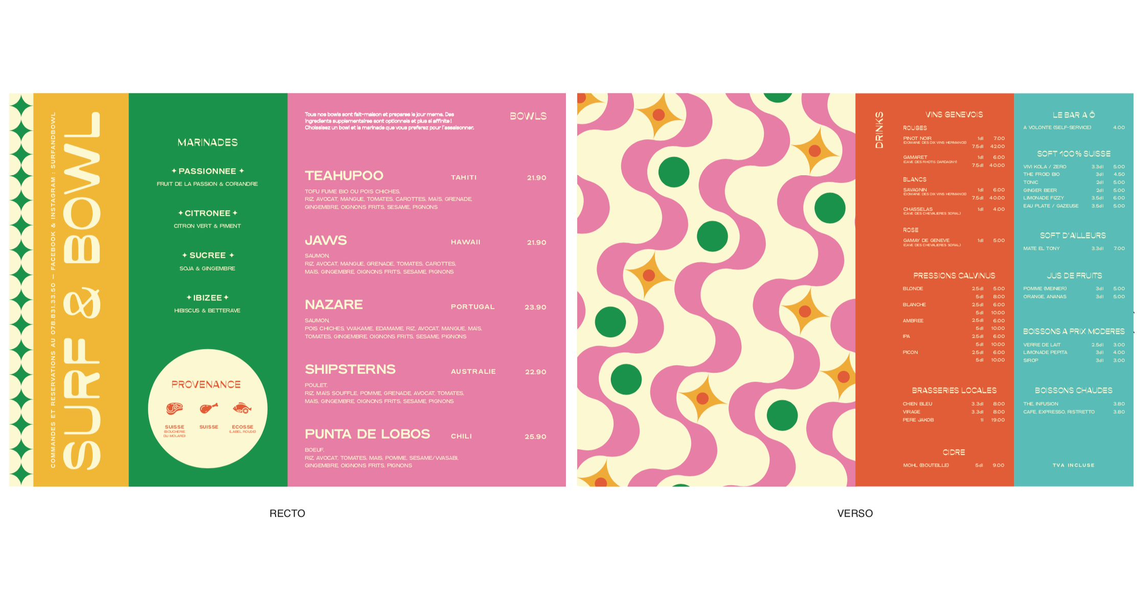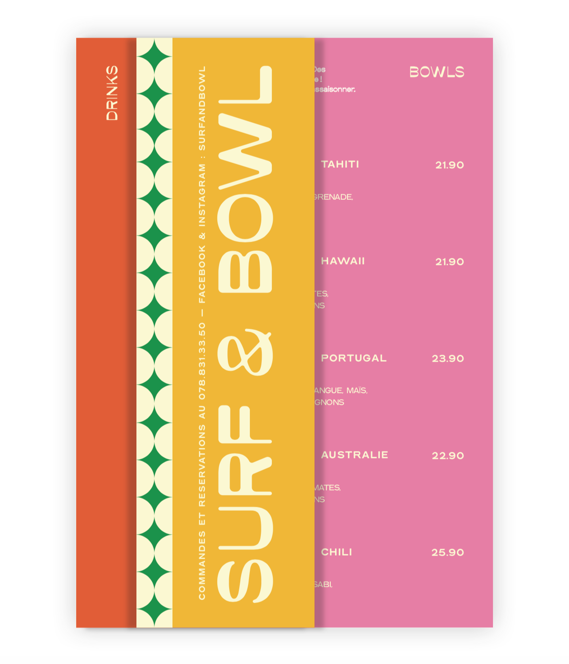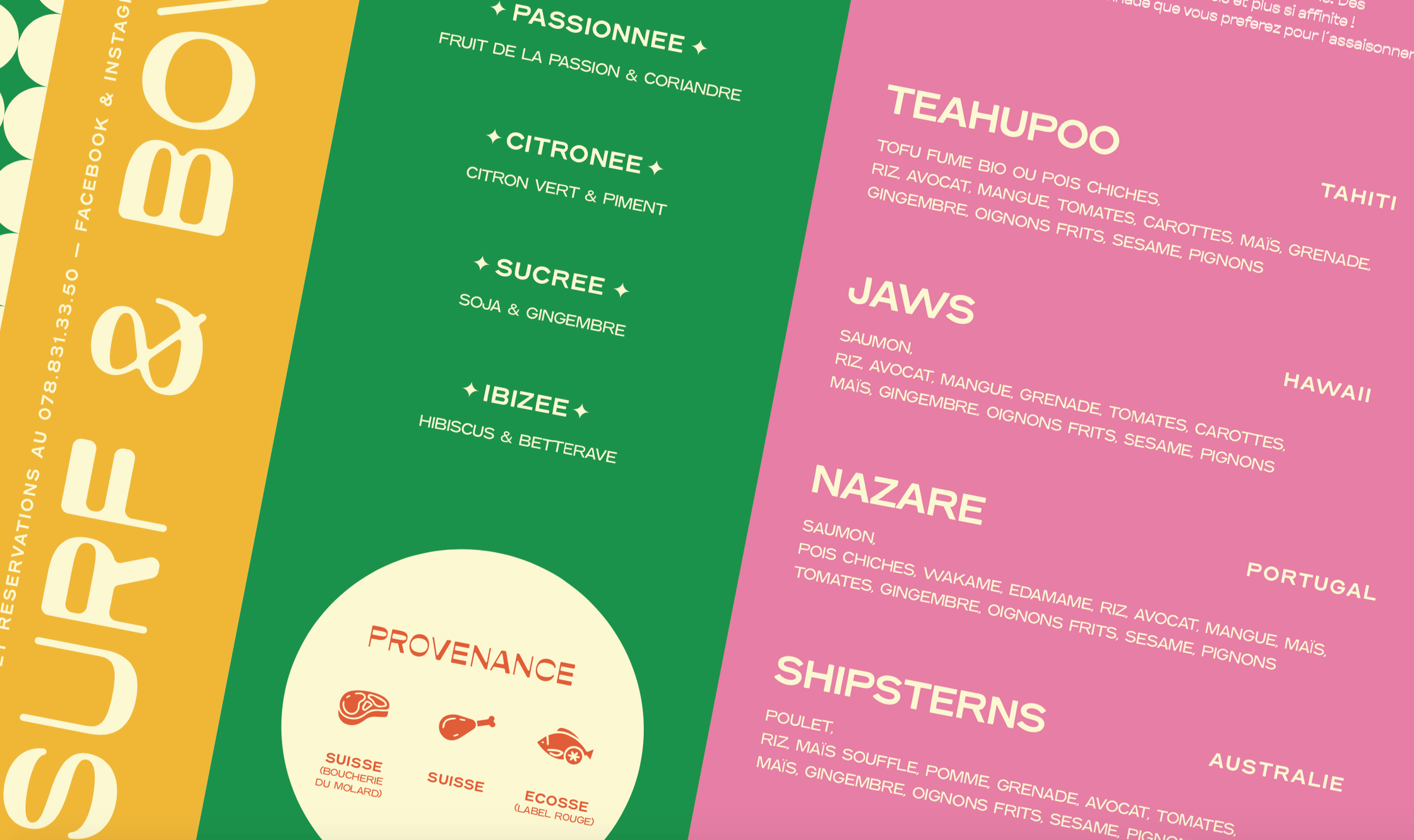 Direction Artistique et refonte de l'identité de Surf & Bowl, restaurant à Genève.