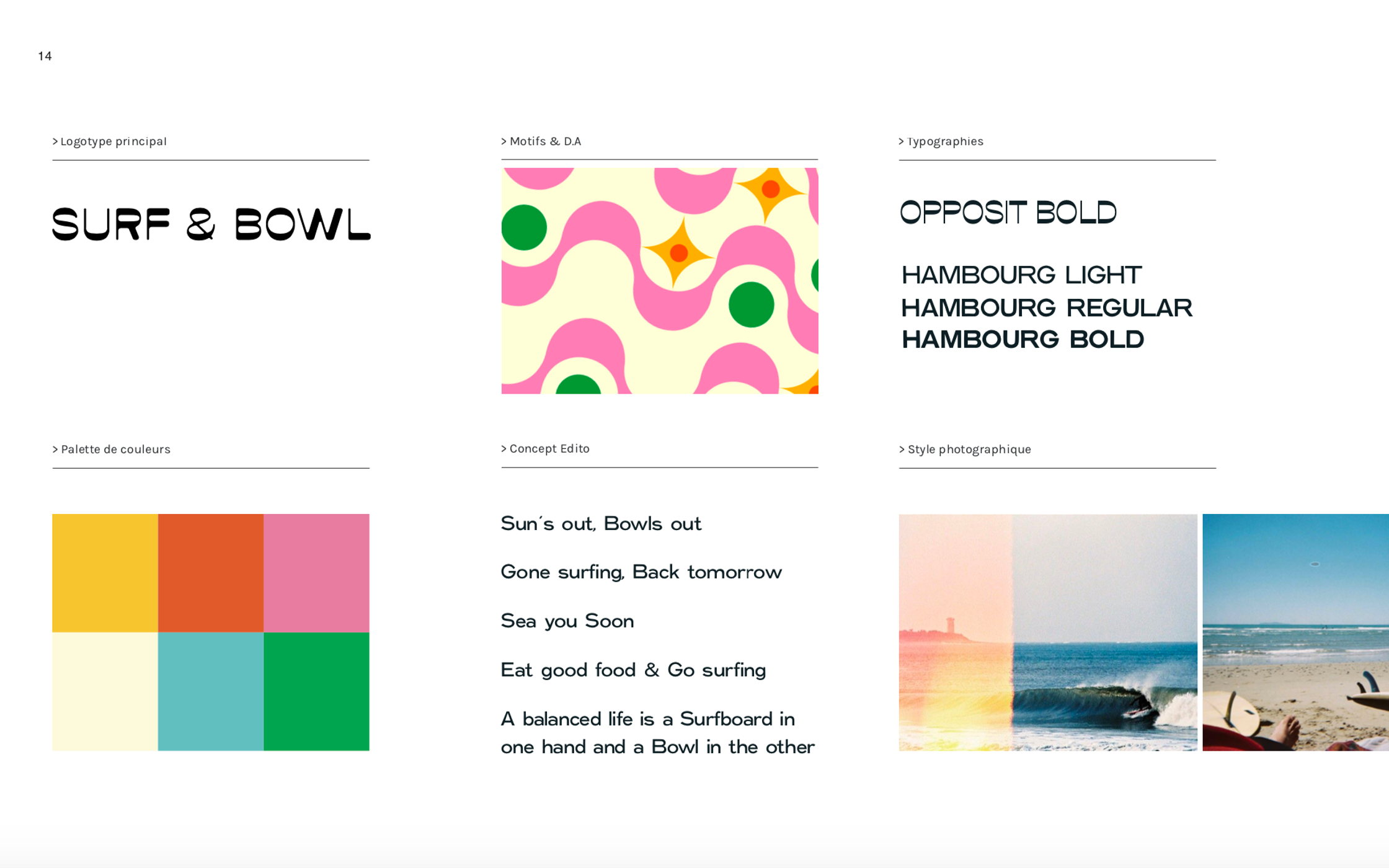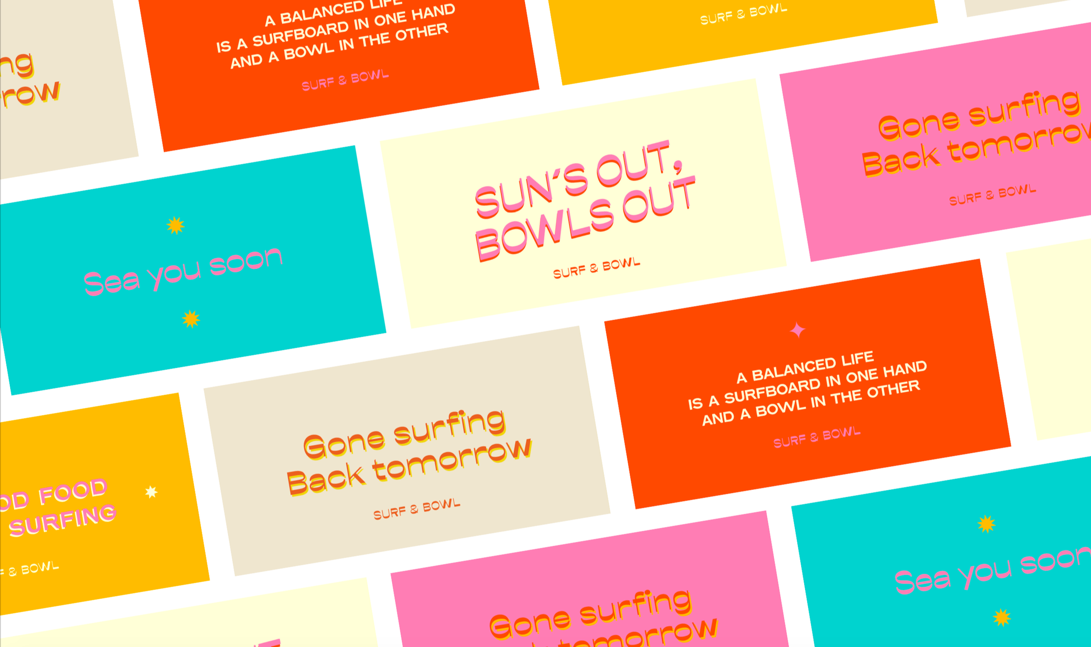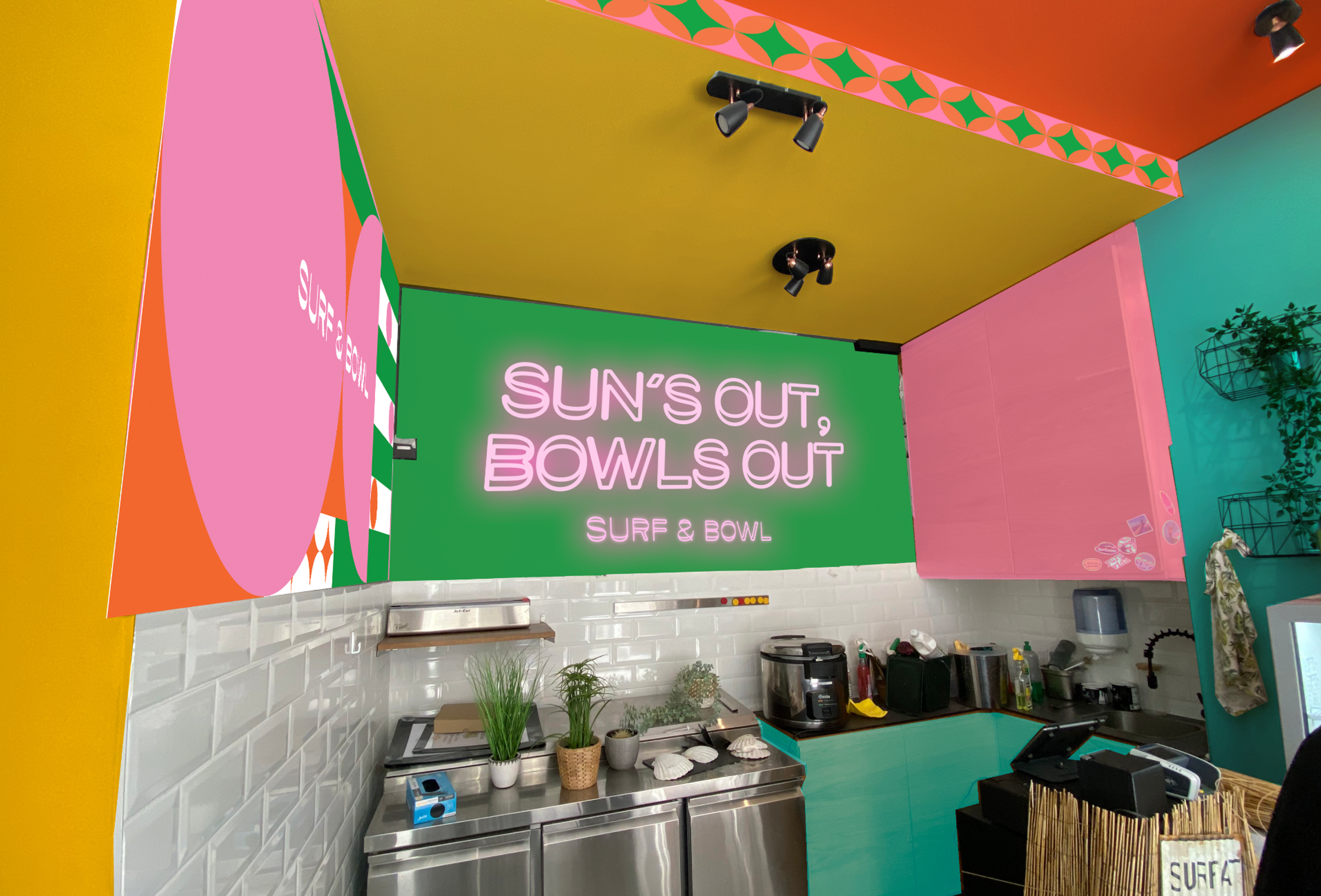 Direction Artistique et refonte de l'identité de Surf & Bowl, restaurant à Genève.